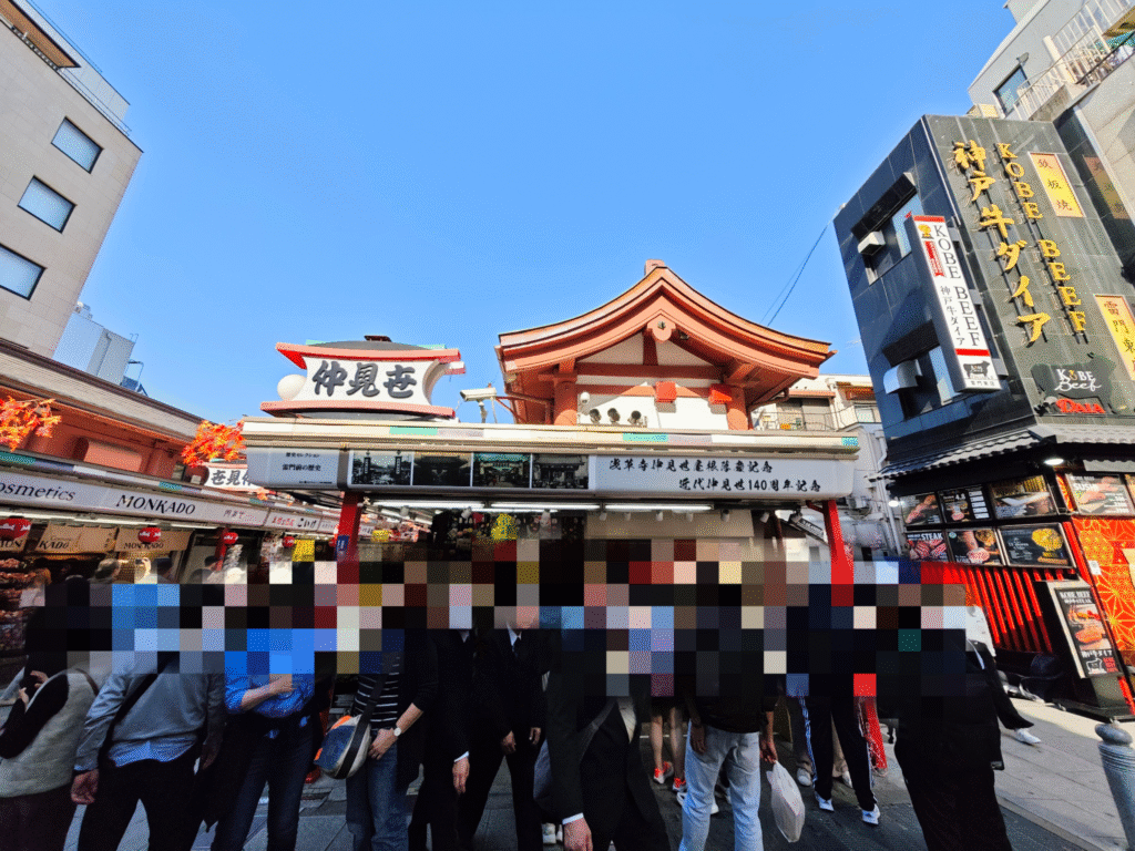 冒頭で説明のとおり雷門からは徒歩約20秒ほど、駅からの所要時間は徒歩3分程度です。