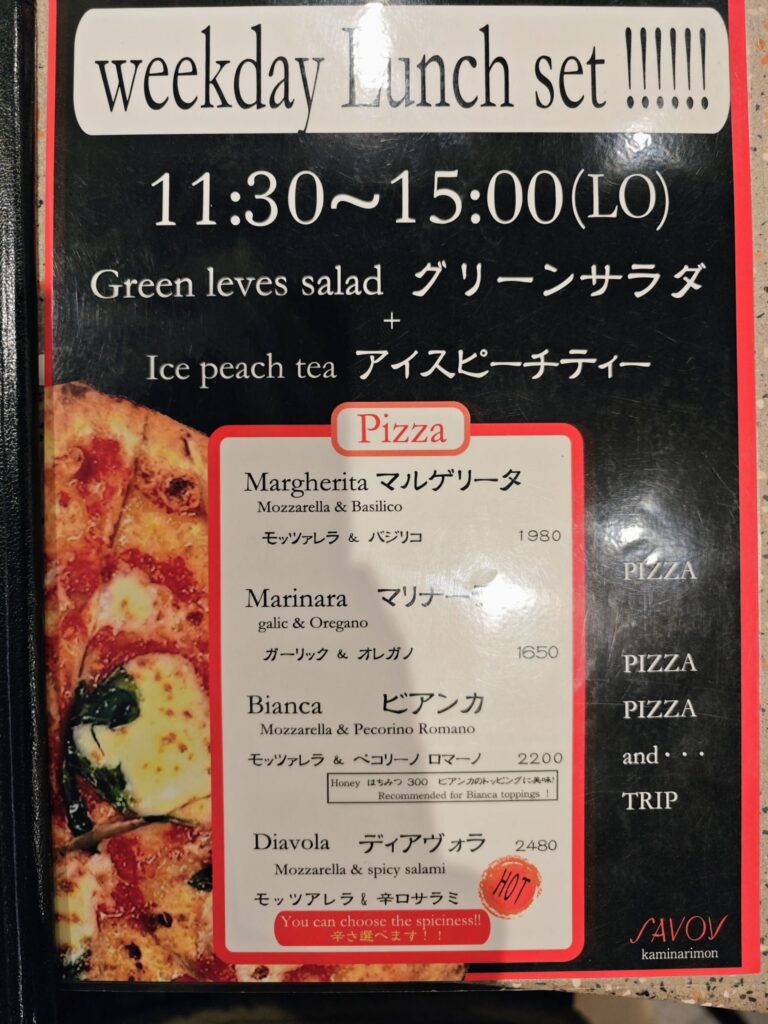 店主様に色々と話を伺ったところこの雷門店は“カウンター席を挟んで“店のスタッフ様と客の距離感がSAVOY系列の中で最も近い店”だそうです。全体的にフレンドリーで心地よいの中でピッツァを楽しむ事ができました。