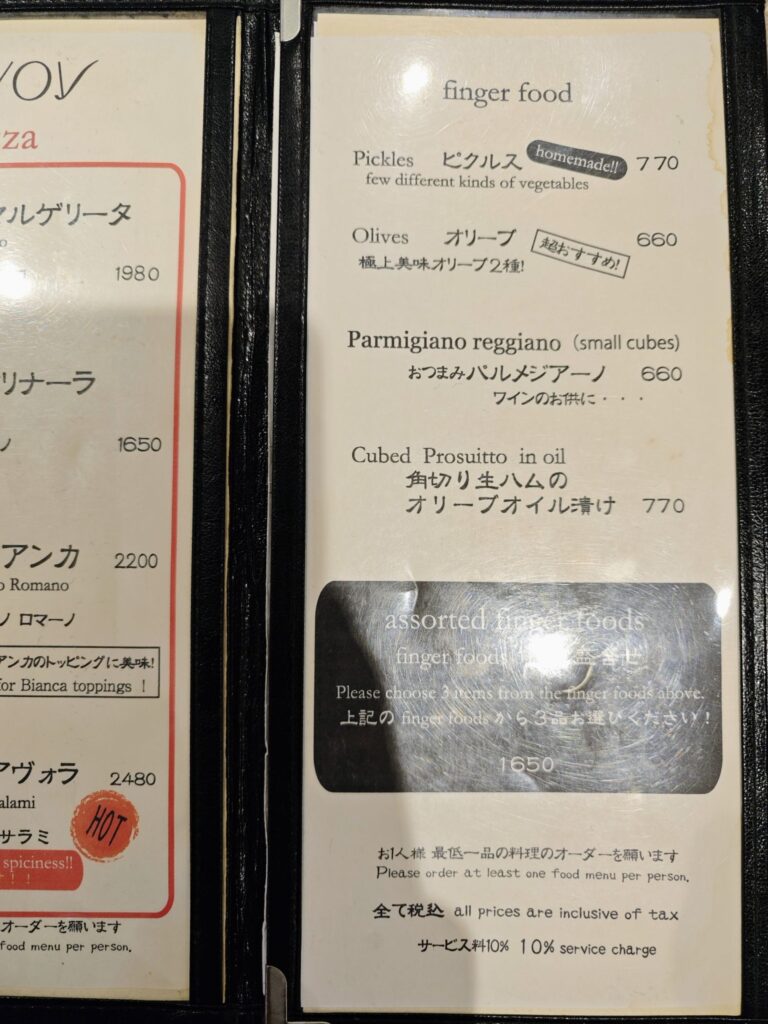 インバウンドの外国人観光客が沢山訪れる立地上、メニュー表などの英語表記にも対応。私の訪問時も実際に外国人のお客さんがピッツァを楽しんでらっしゃいました。