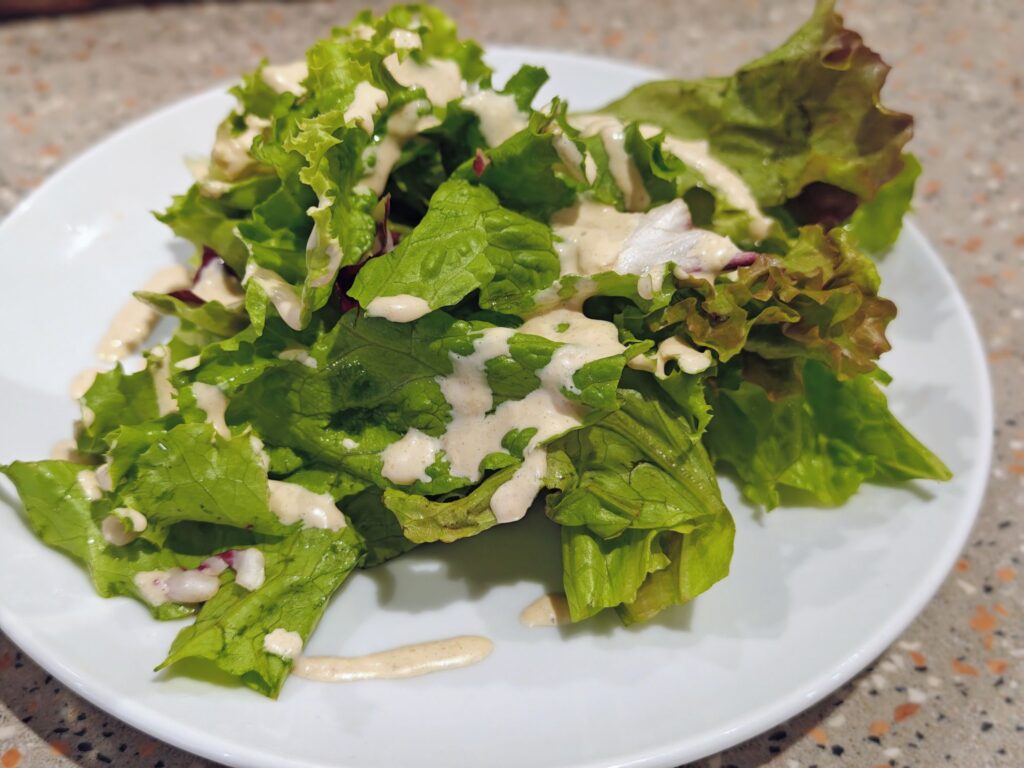 フレンチドレッシング?がかかったシンプルなグリーンサラダ。