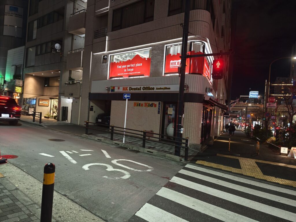 出口の目の前にある十番稲荷前交差点を左折して北(六本木一丁目方面)へ。