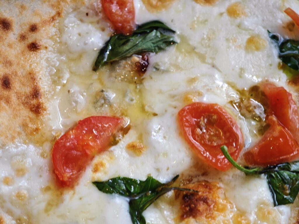 ナポリピッツァとしては扁平でぺったりとした形状。コルニチョーネ(縁の部分)も高さほどほどでどちらかと言うと控えめな感じです。