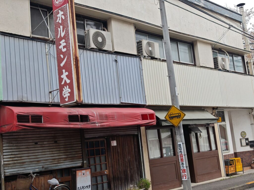 突き当りの番場北裏通りを右折すると『ピッツェリア ベル・リーノ』があります。同じ並びの『ホルモン大学』の看板を目印にすると分かりやすいです。