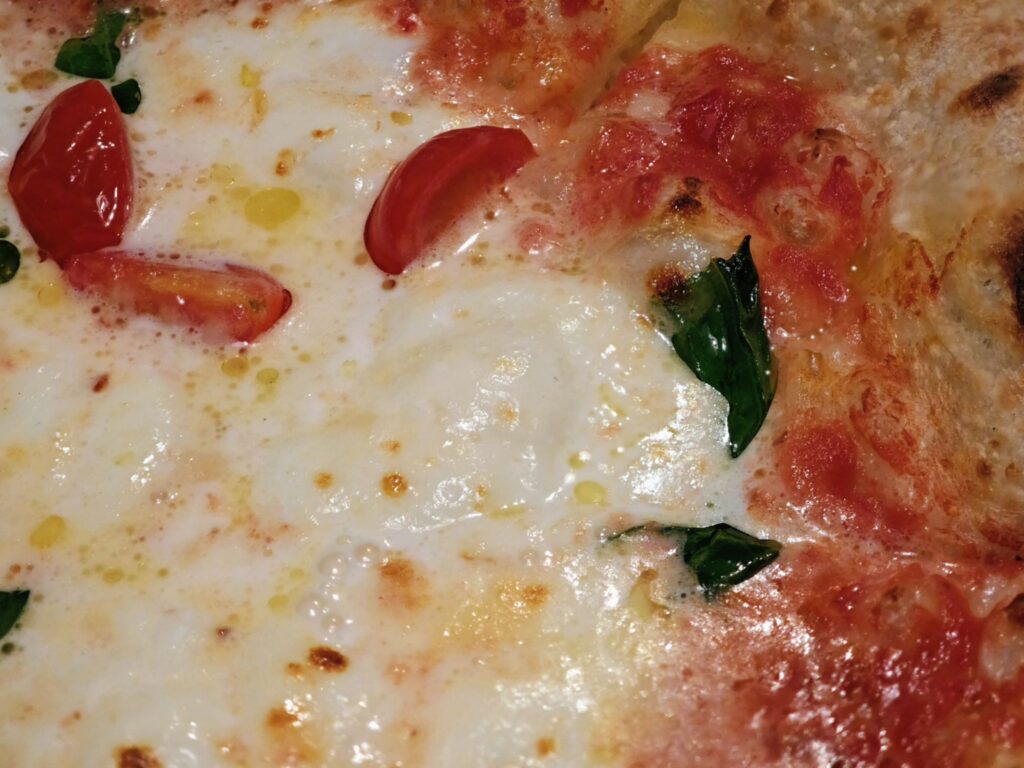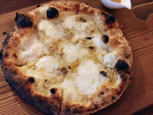 店内の薪窯で焼き上げたピッツァの生地表面はサメ肌のようなザラザラとした舌ざわり。
