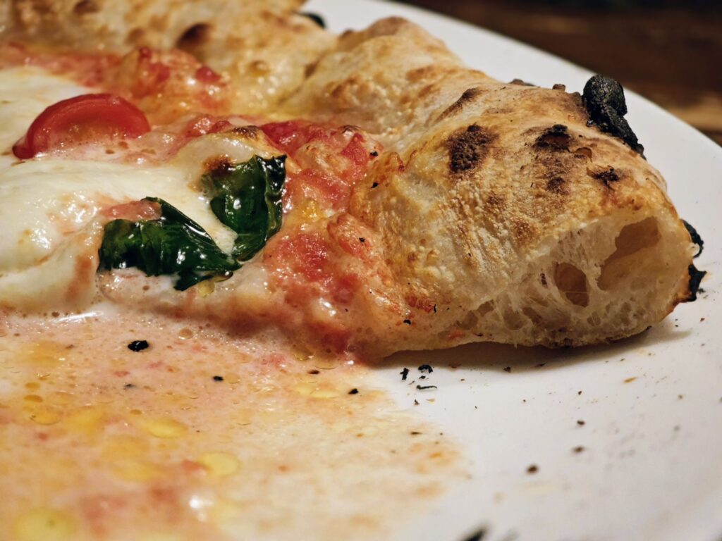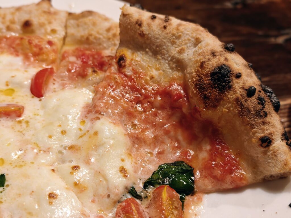コルニチョーネ(縁)の部分は幅広で厚みを兼ね備えており、生地が全体的にモチモチ感よりもクランチーに近いバリッとした食感に力点が置かれています。