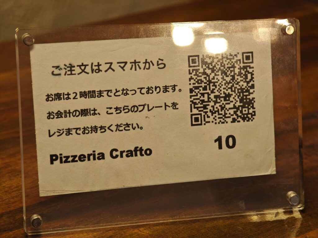 注文は卓上のQRコードをスマートフォンで読み込み専用サイト経由で。