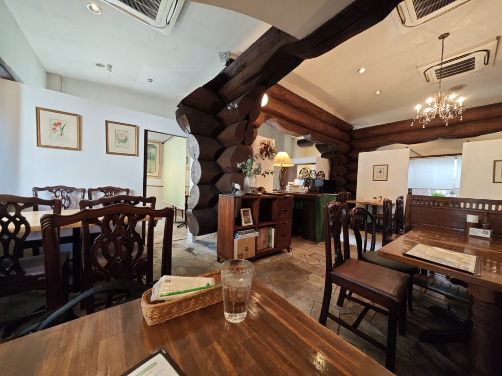 ログハウスのような設えで統一された店内もかなり広々としており開放感があります。雑然とした感じがなく程よく落ち着いたゆったりとした雰囲気で過ごせるのも高評価ポイントですね。