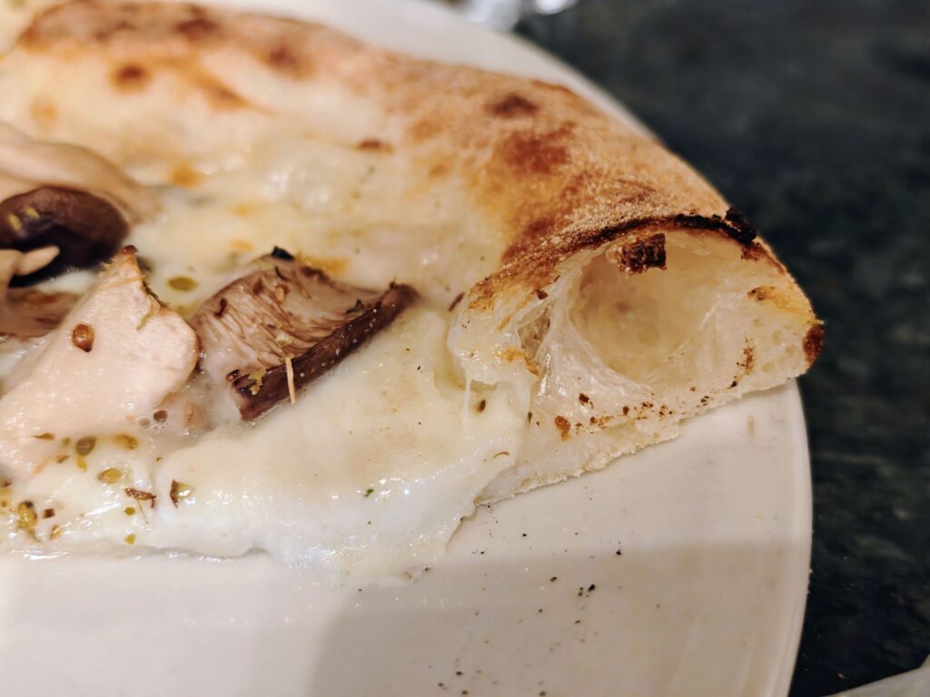 一方でキノコから滲み出た?水分がチーズと混ざってベチャベチャに。少々ノイズに感じられて個人的に気になった。