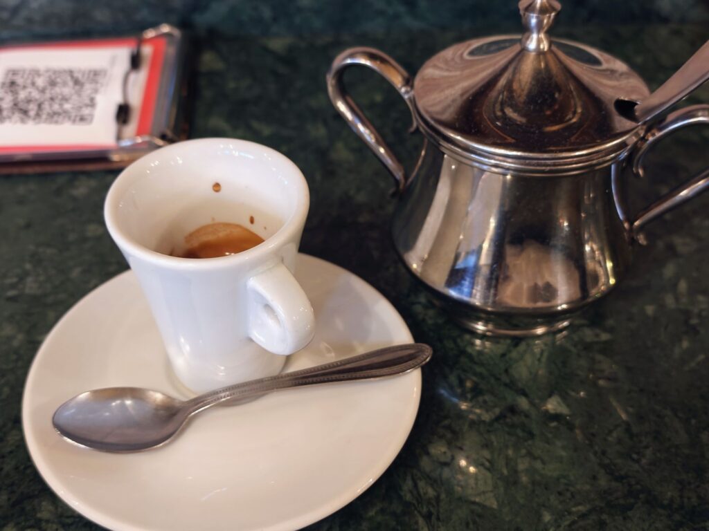 最後は濃ゆいエスプレッソでクールダウン。ご馳走さまでした。