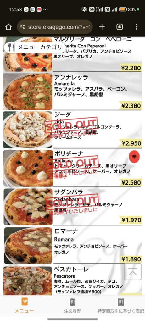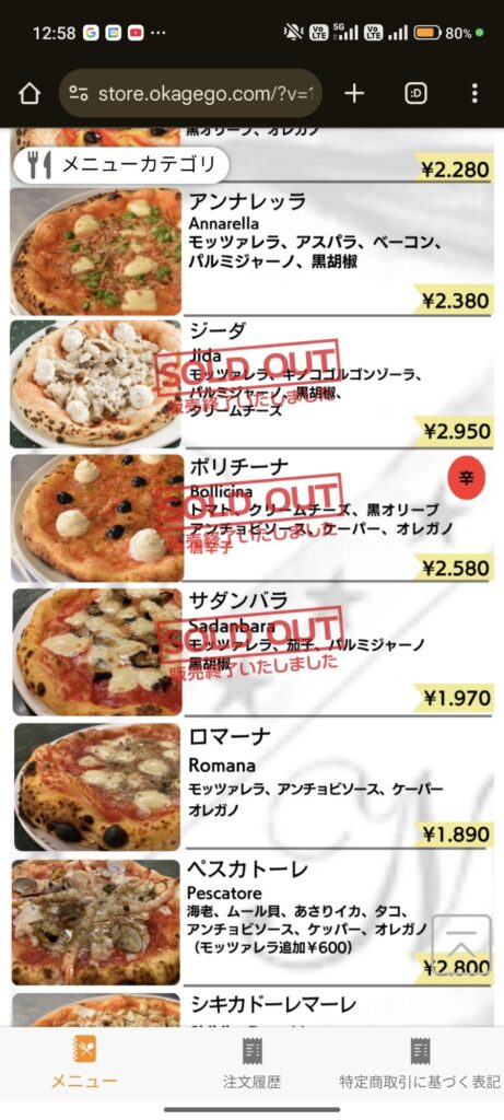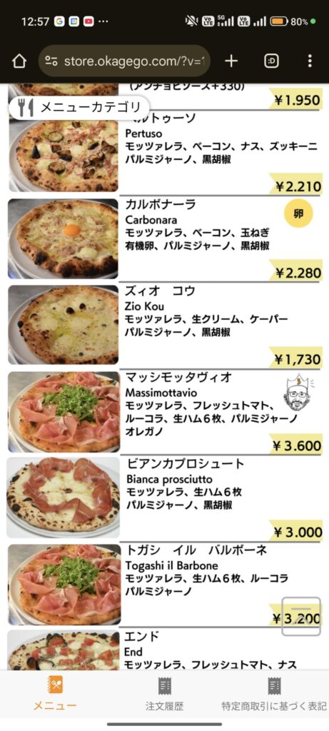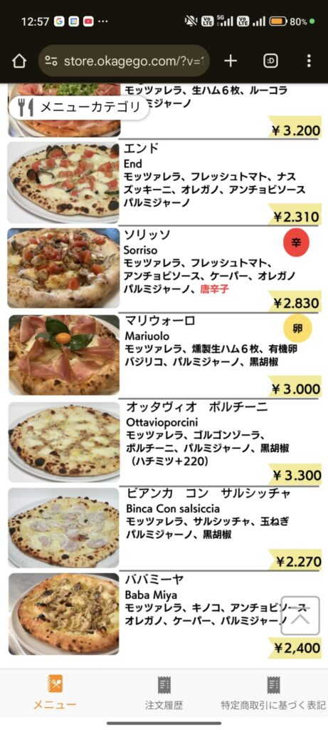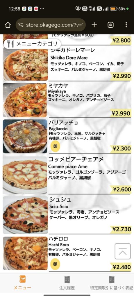 この店で私がまだ食べた事のないピッツァという事で「ババミーヤ(Baba Miya)」を注文してみました(笑)