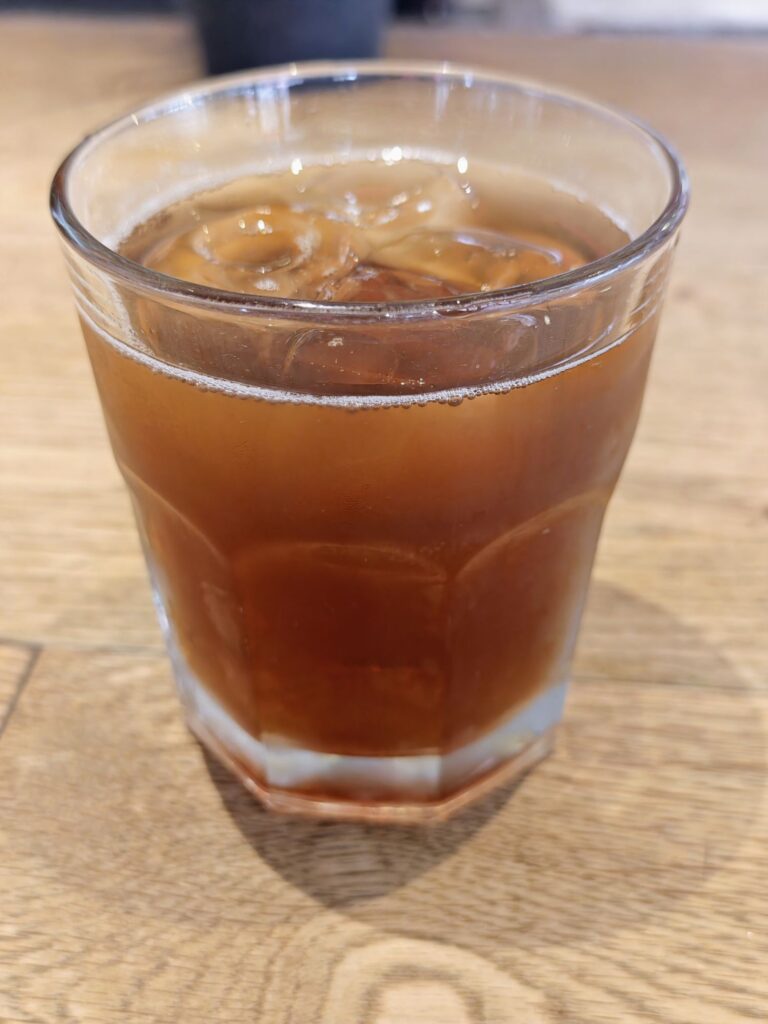 甘味料の甘さではなく桃果汁の素朴なさっぱりとした甘さに茶葉のほのかな苦味がぶつかる感じ、おかわり自由なのも有難い。さっぱりと美味しく2杯飲んでしまいました(笑)