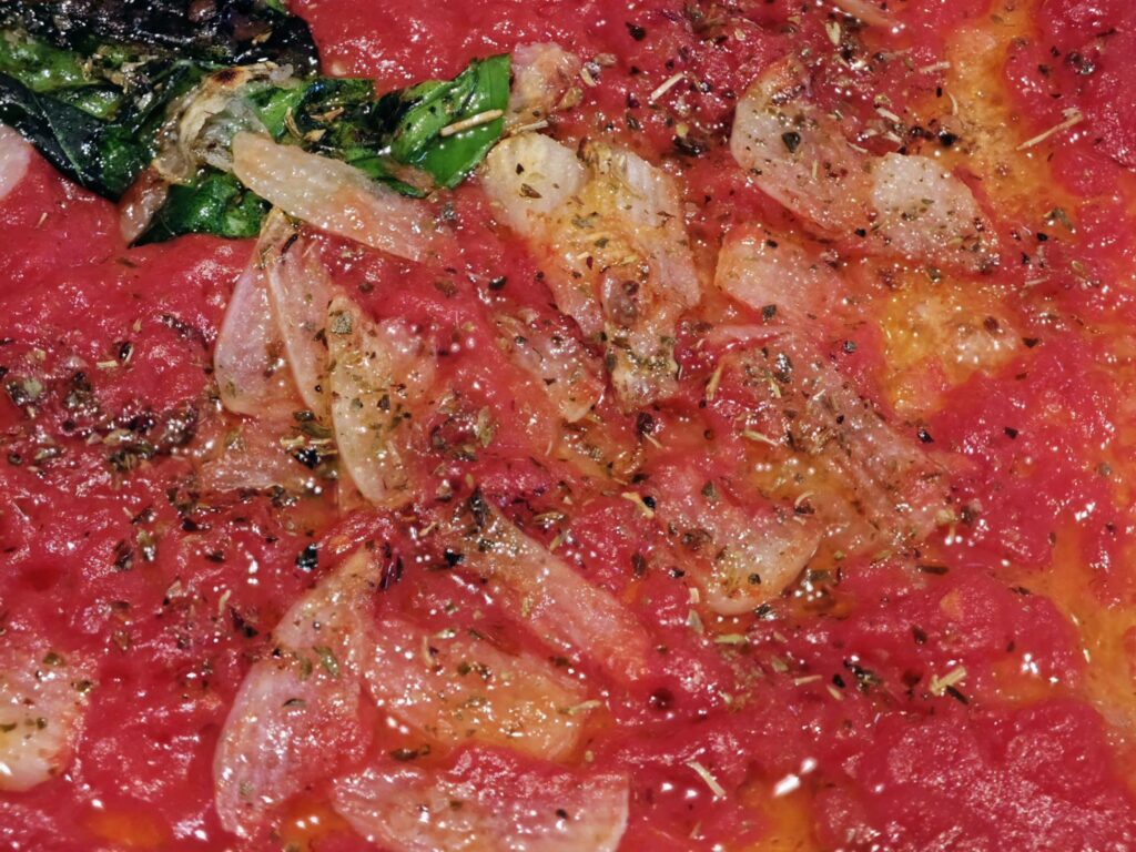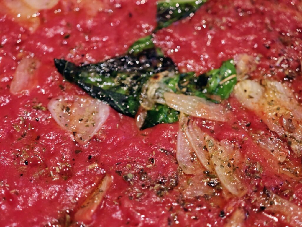 ジューシーでとても瑞々しいトマトソース。甘さは控えめでいてトマトのうま味が凝縮されたような濃厚な味わいで美味しい。ここに薄くスライスしたニンニクの辛味成分がカットイン。「トマトのうま味」と「ニンニクの辛味」の綱引きが生み出す絶妙なバランス感がお見事!