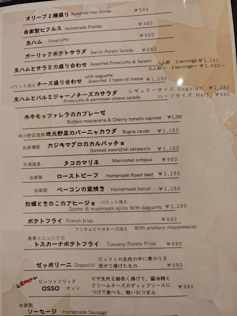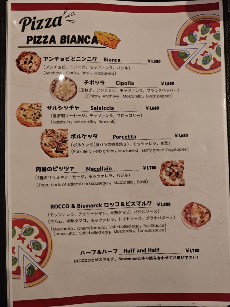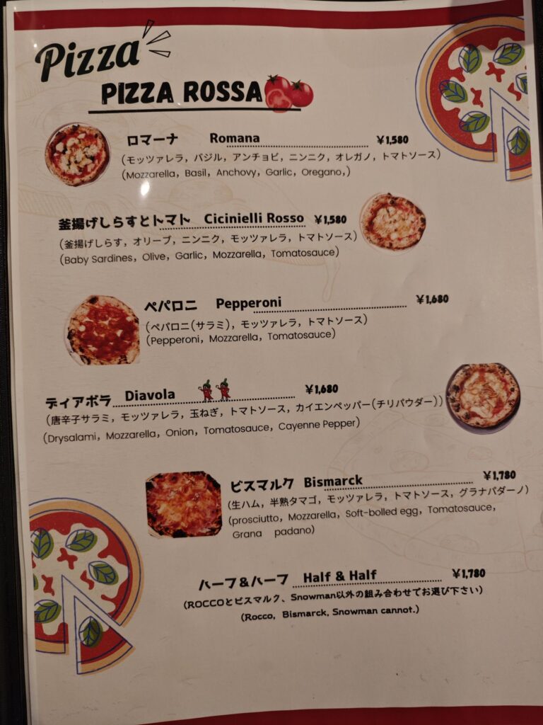 メニューに掲載されている、ほとんどのピッツァでハーフ&ハーフができるのが嬉しい。