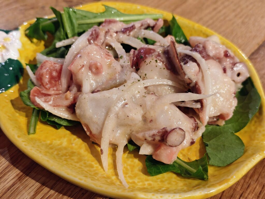 厚めにスライスしたタコは強い歯ごたえがあります。