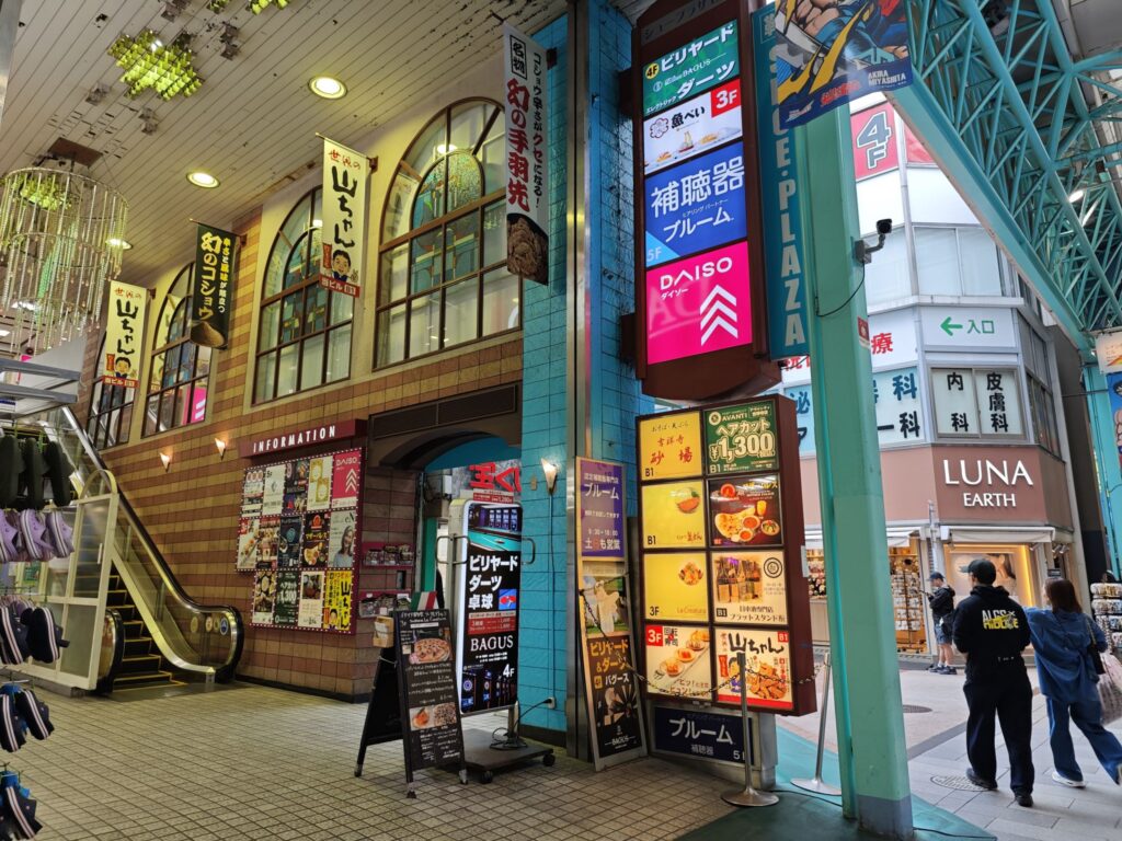 アーケード内を少し歩くとファミリープラザビル(2FがDAISOになっているので目印に)が見えてきます。エスカレーターでビルの3Fへ。