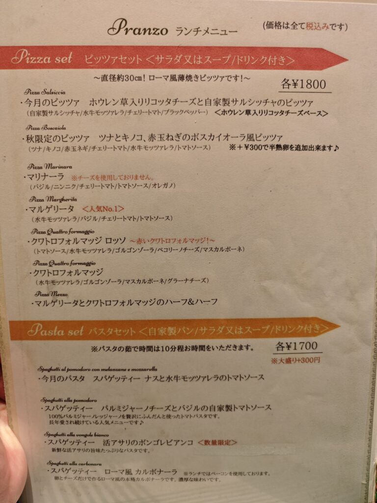 追加料金なしでハーフ&ハーフのピッツァがあるのが素晴らしいですね。