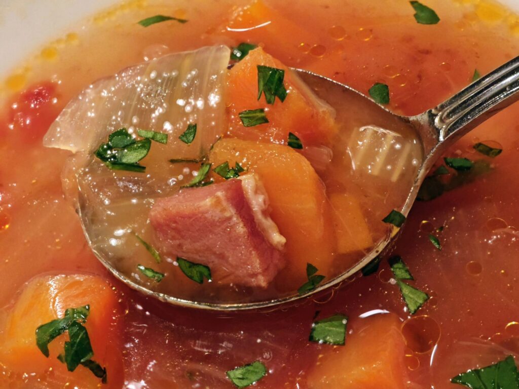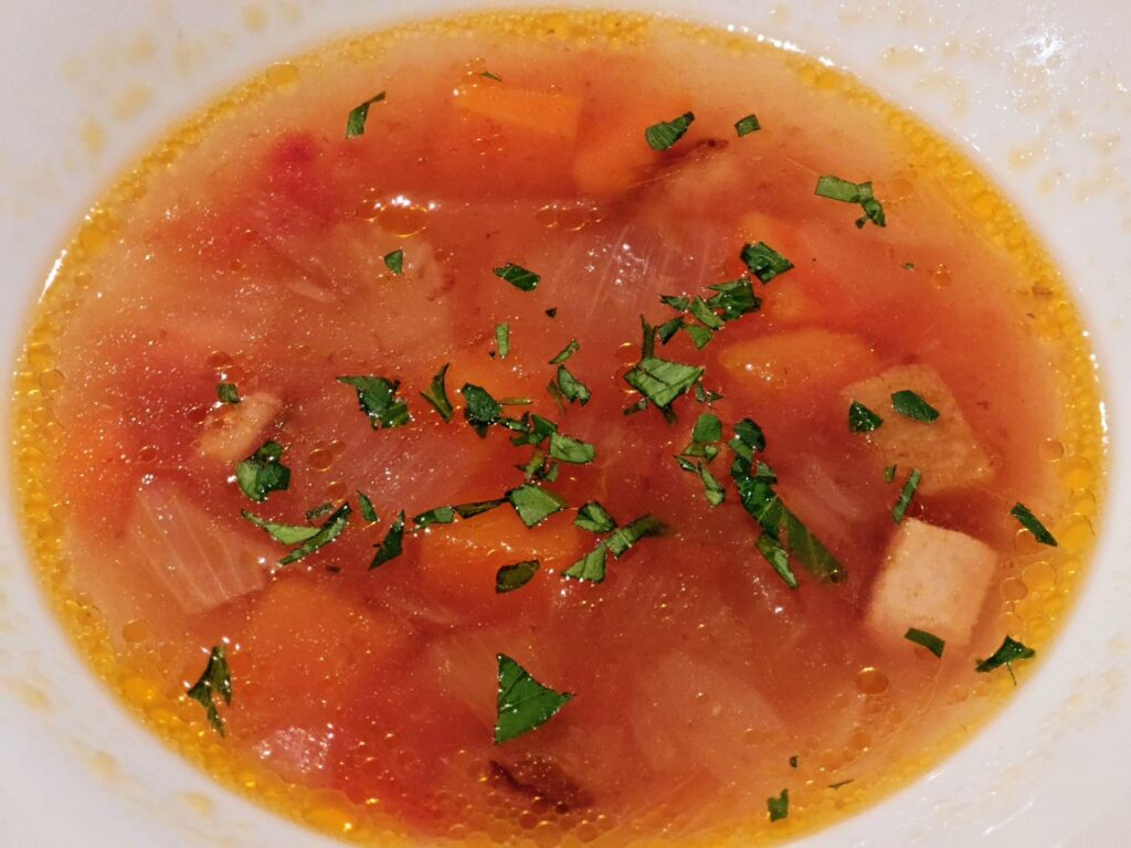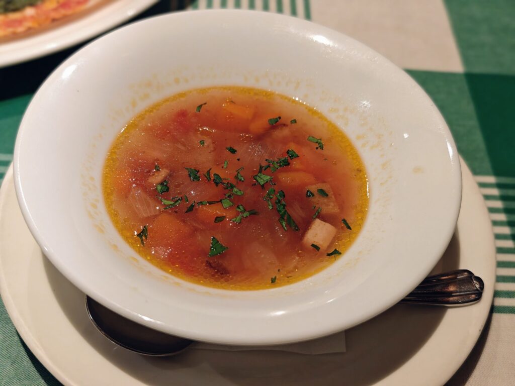 具もベーコン、人参、玉ねぎ、セロリ、パセリとゴロゴロ具沢山で大満足。
