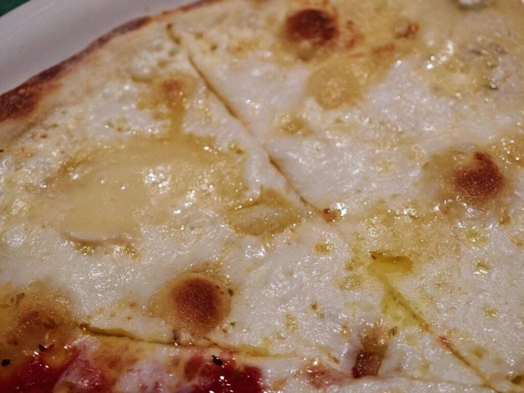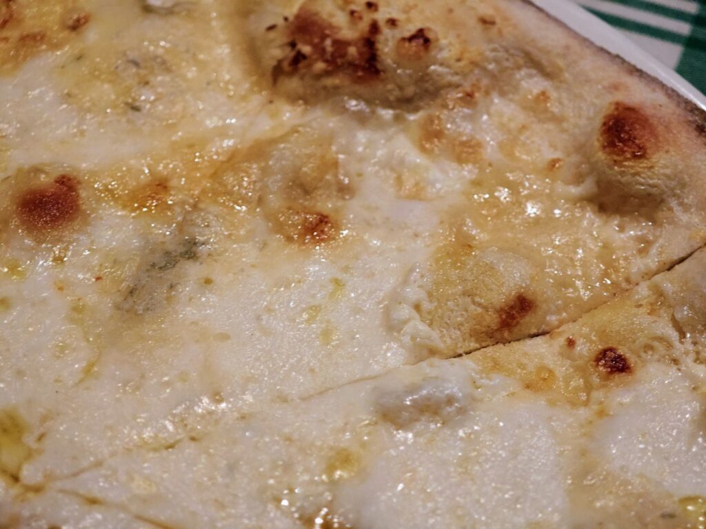 一方のクワトロフォルマッジは水牛モッツァレラ、ゴルゴンゾーラ、マスカルポーネ、グラーナチーズが用いられている。