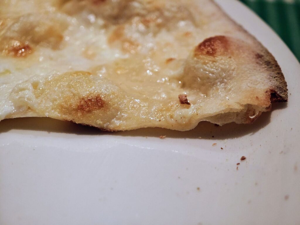 モッツァレラのミルキーさとコクの中にゴルゴンゾーラ特有のクセ感、マスカルポーネの滑らかな舌ざわりやグラーナチーズの粉っぽさが相入り混じる。とりわけゴルゴンゾーラのパンチが強くブルーチーズが好きな方にはたまらない味わいではないだろうか。