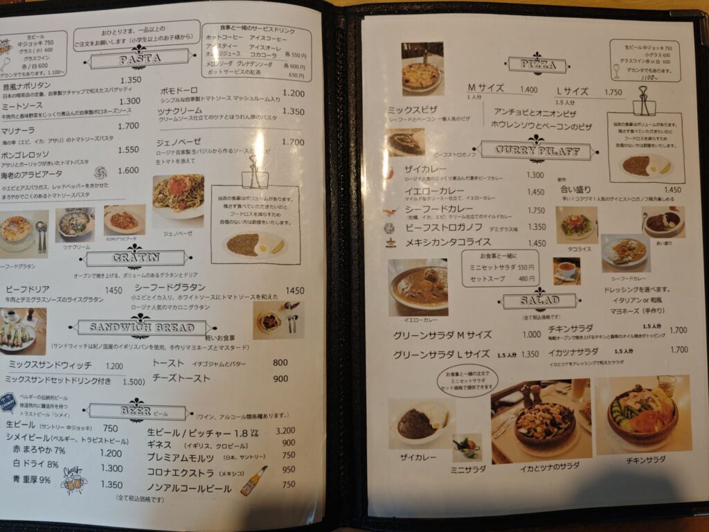 名物の「ザイカレー」をはじめ、パスタやピザなど料理のメニューも豊富。純粋な喫茶店というより実態としては喫茶+食堂に近く、ビールやワインなど酒類も提供しているため居酒屋利用も可能だ。