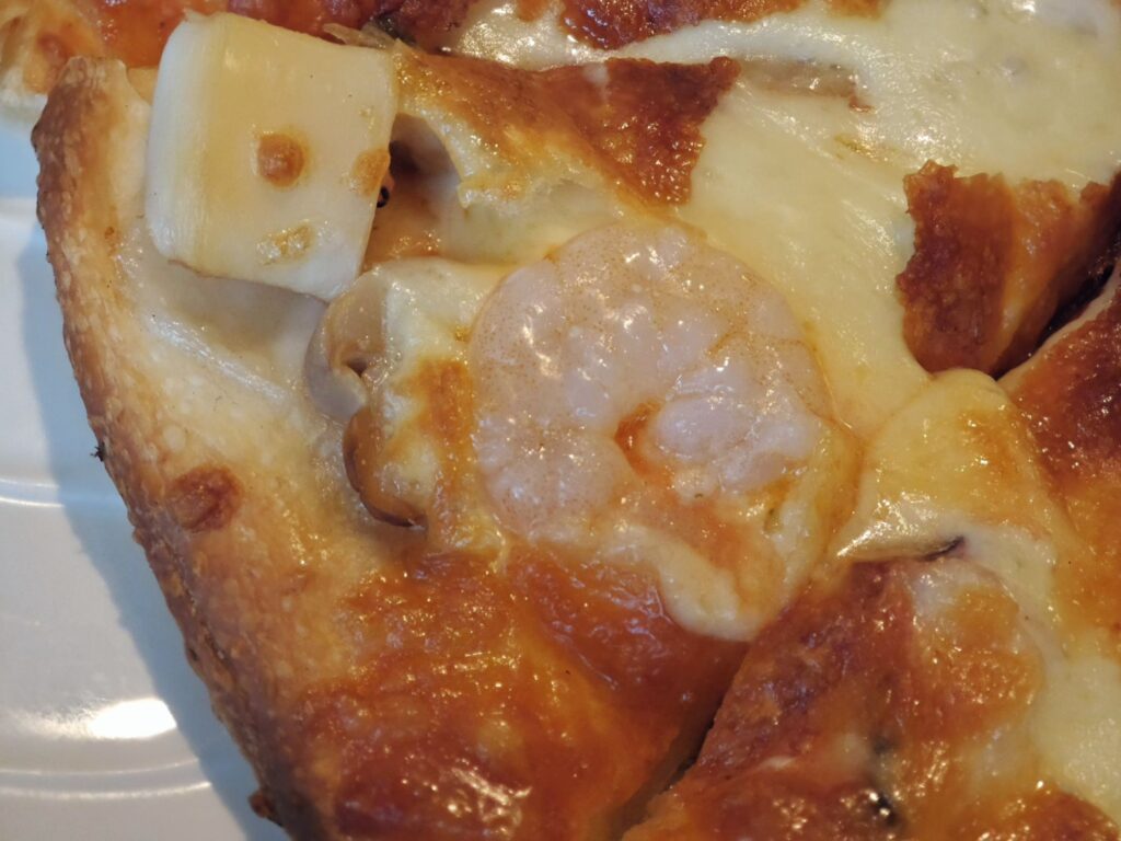海老・ベーコン・ホタテといった具材も大きくゴロゴロとしており、主食というよりワインやビールに合うおつまみという側面が強い一品かもしれない。