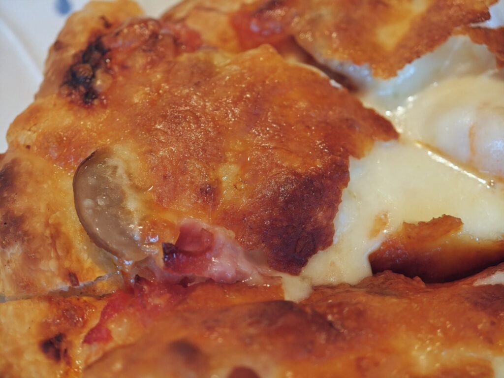 特筆すべきはチーズの状態で、強火で炙られて表面はパリパリな焼きチーズになっている。その下はトロトロ感が残っておりチーズ好きにはたまらない!