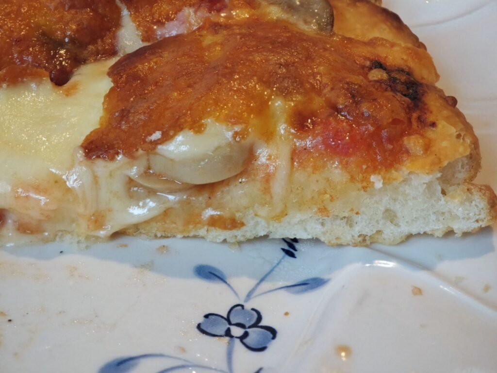ナポリピッツァのようなもっちり感やフワフワ感は一切なく、ザクザクとしたクランチーな食感。少し焦げがついた生地の小麦粉が非常に香ばしい。