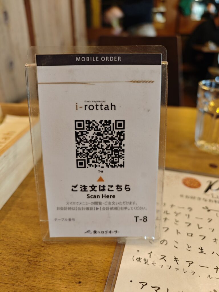 注文は卓上のQRコードをスマートフォンで読み取りWeb上からモバイルオーダー方式でした(メニュー表などに明記は見当たりませんでしたが店員様に声掛けでの注文もOKと思われます)。