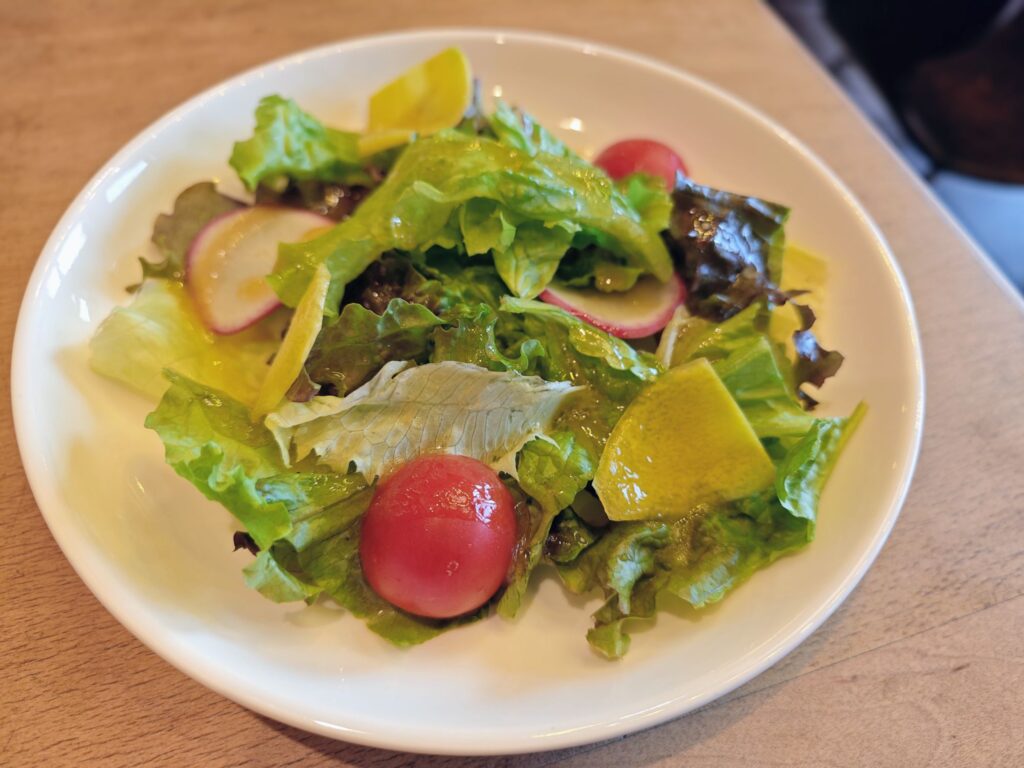 ミニトマト・レタス・パプリカ・赤かぶと品目数もそこそこ多くバランスも良いサラダ。