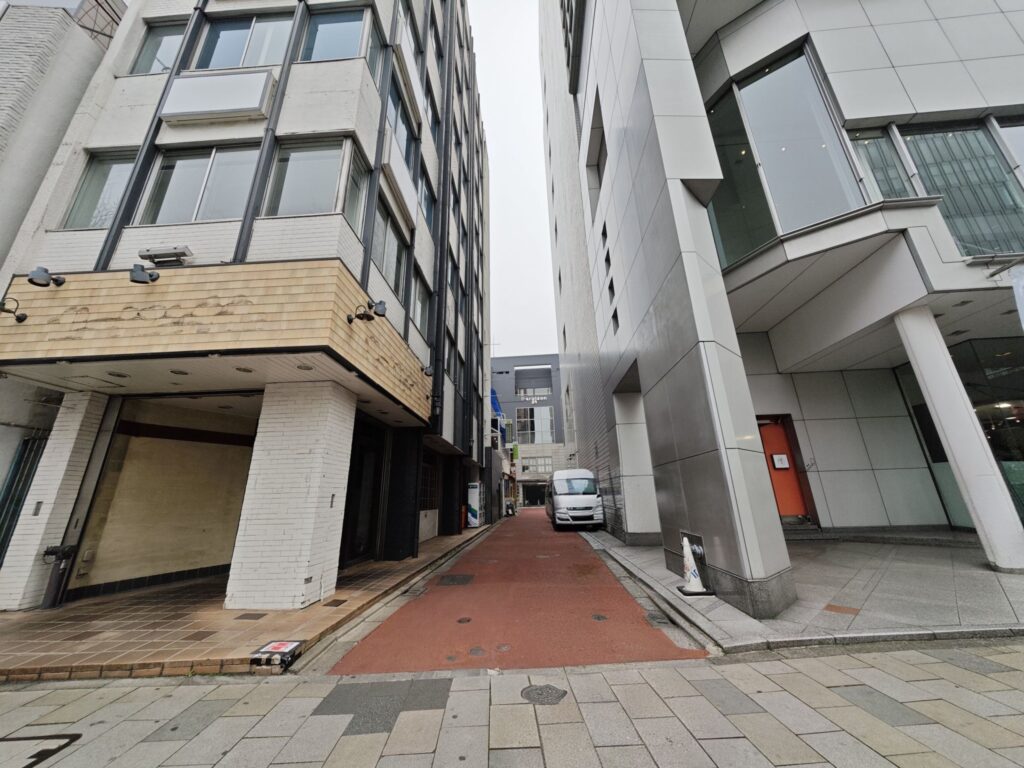 出口の反対方向に少し進むとビルの間に小道があります。この小道を進むとすぐ先に『ナプレ南青山』があります。