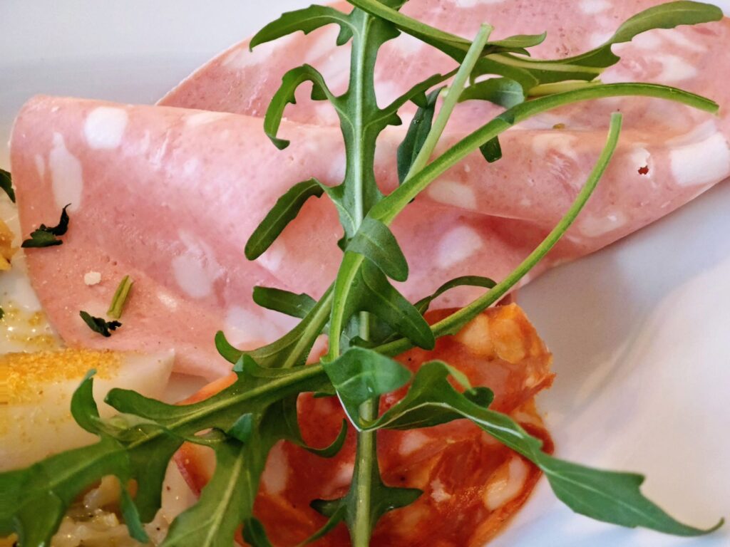 「モルタデッラ」の方は塩分控えめで熟成されてこなれた感のある肉のうま味が主体。「ピカンテサラミ」はピリッとした辛味のある王道なタイプ。