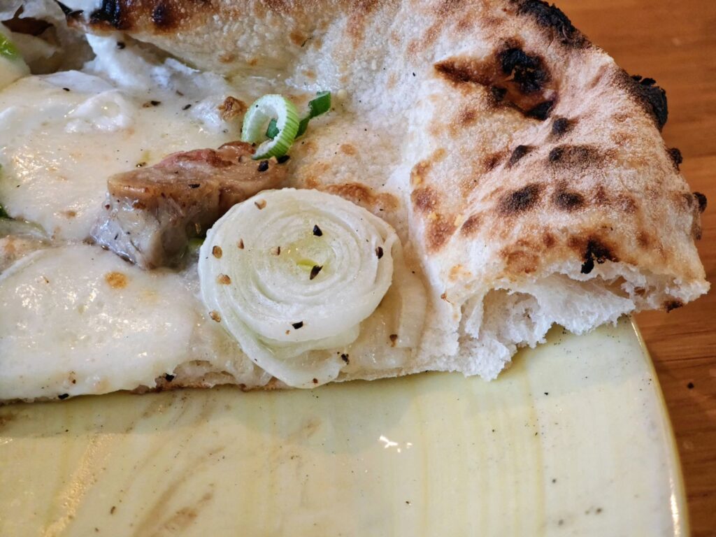 葉玉ねぎは見た目こそ青葱のようだが辛さはなくむしろほのかに甘い。ピッツァの味わいのノイズにならずシャキシャキとした食感も彩りの1ピースを添えているように感じられる。意外性のある食材を使いつつもしっかりと王道のピッツァとしてのスタイルを崩壊させず絶妙なバランス感で提供できるのは、日本のナポリピッツァ界の老舗である当店ならではだろう。