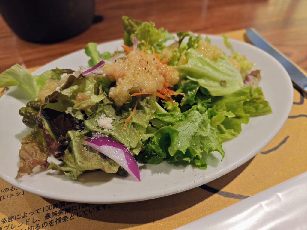 ドレッシングはすりおろしたリンゴが使われておりシャリシャリとした歯触りとさっぱりとした甘さが引き立ちます。