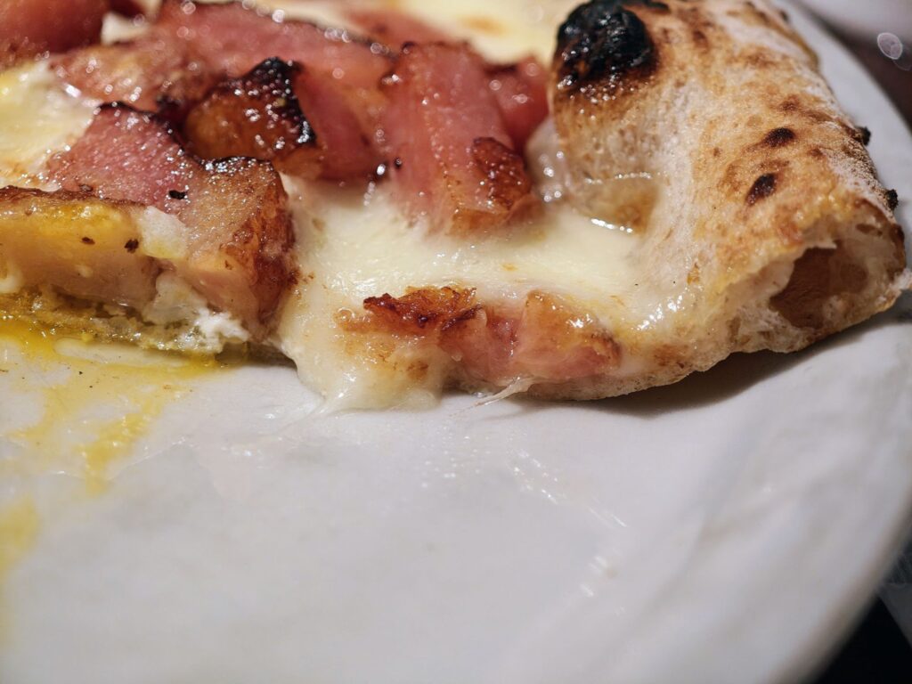 中心部は犬歯で噛むとストッと素直に歯切れしていく感じで全体的にソフトな印象を受けます。焼きムラや焦げも少なく安定感ある生地質…さすが世界チャンピオンのピッツァ。