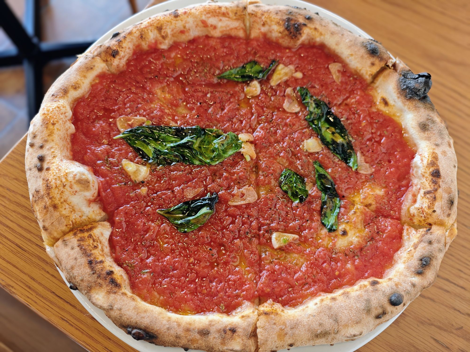 薪窯の熱で水分を飛ばしすぎず瑞々しさを保ったトマトソース。果肉感のあるフルーティな甘味が主張してきます。