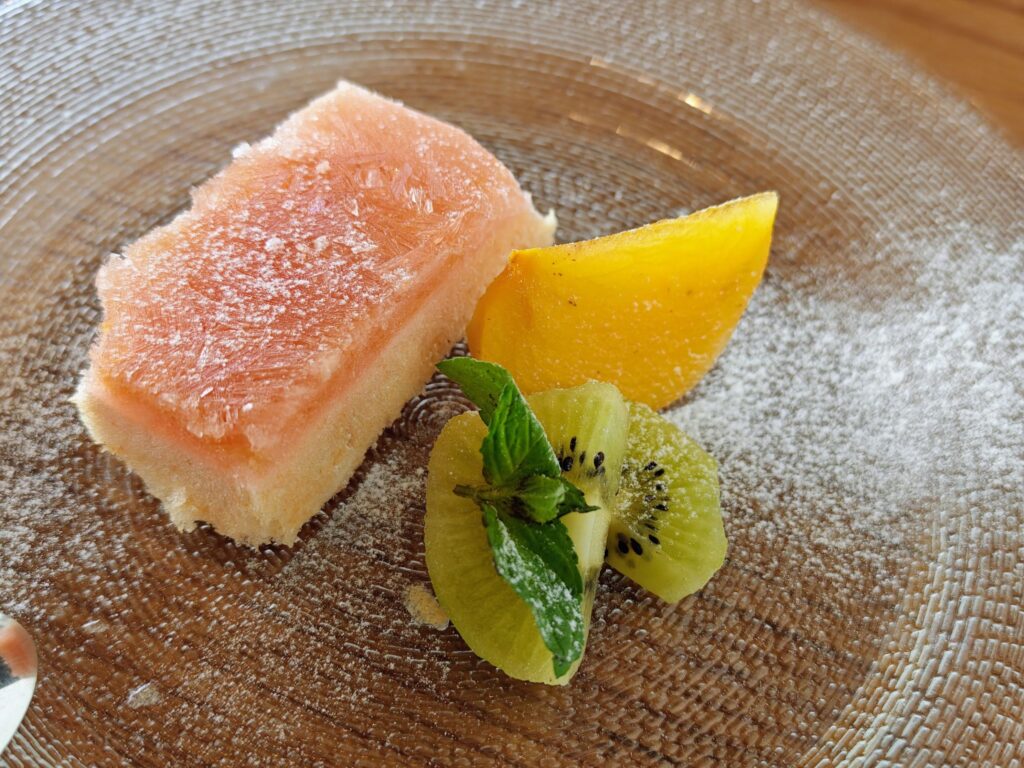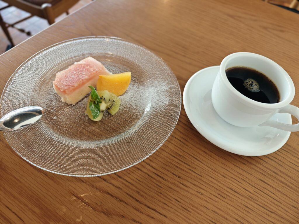 本日のドルチェ盛り合わせはチーズケーキに柿とキウイ。ランチセットにプラス300円とお手頃なのも嬉しいポイント。