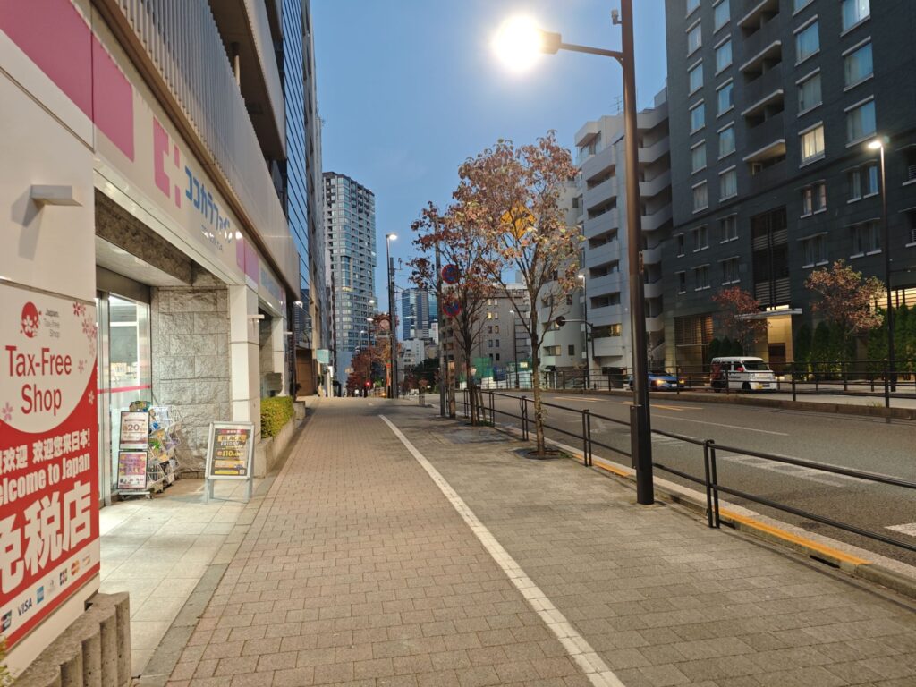 都道312号線を東(白金高輪、泉岳寺方面)に歩きます。
