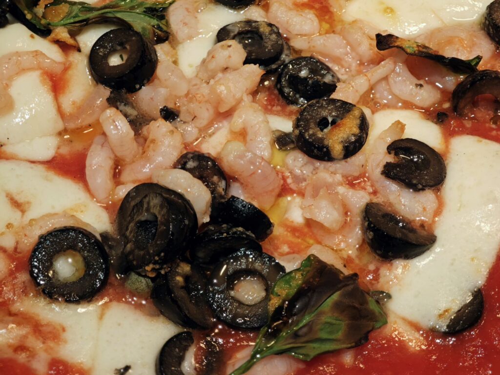 姫甘えびのみならず斑(まだら)状にトロけたモッツァレラチーズのまったりとしたミルキーな風味や、ブラックオリーブの瑞々しさやビター感と多様な味わいが楽しめます。ケイパーの塩気もクラフトビールに非常によくマッチしていますね。