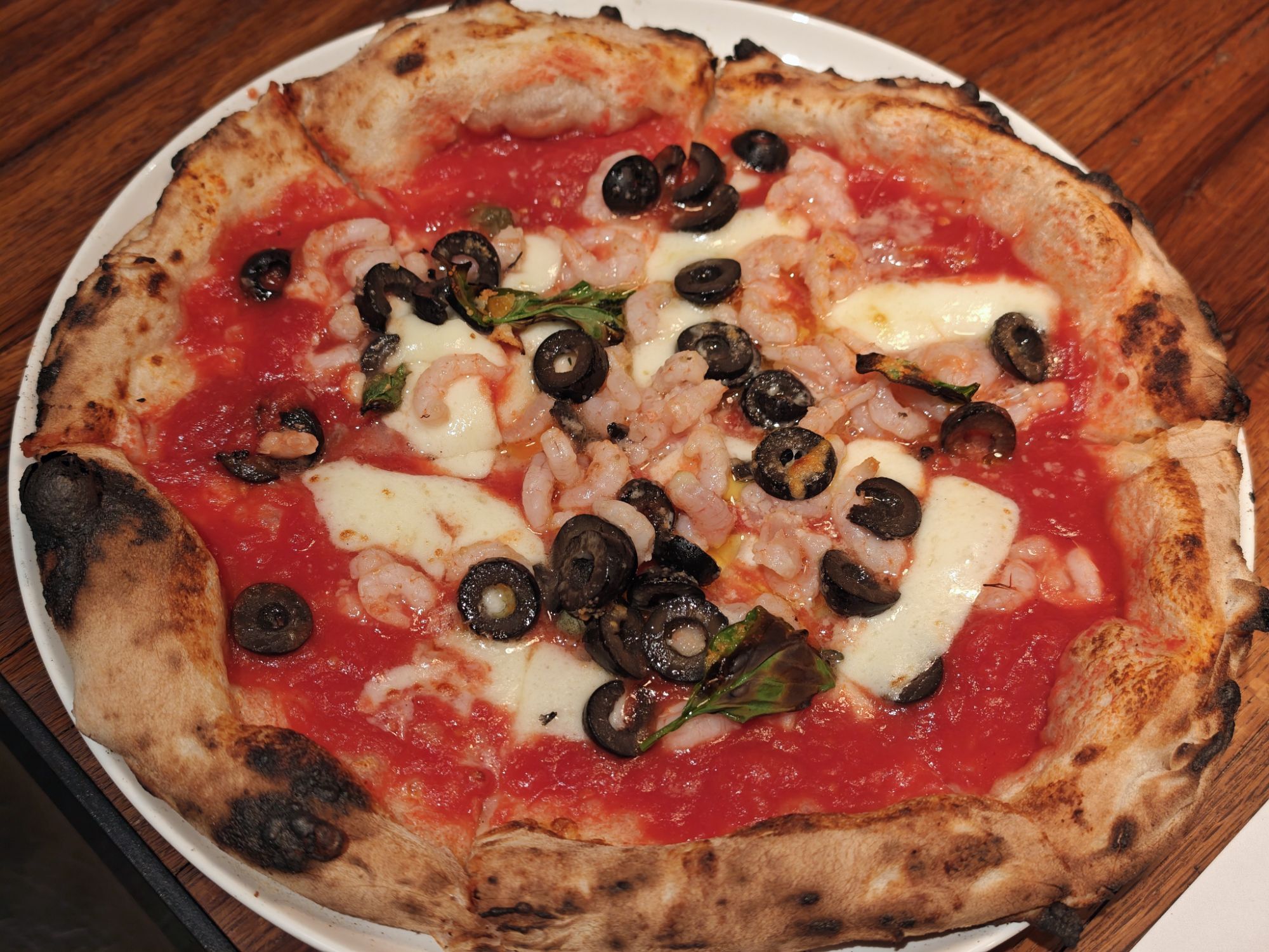 何よりもピッツァ上にたっぷりと配置された姫甘えびの甘味とプリプリとした弾力感が最高。「海老好き」かつ「ピッツァ好き」の人にめちゃめちゃ教えてあげたくなるピッツァです。