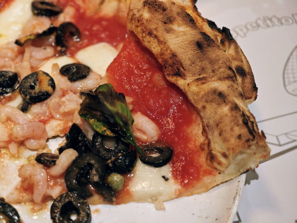 全体的にしっかり目に火が通っており水分が飛んだ事によるサックリとした軽やかな食感が前面に出ている感じ。ナポリピッツァの生地は「小麦粉・水・塩」の3要素から構成されますが、塩気のシャープな尖りが比較的抑えられておりアドリア海のような波風のない穏やかな風味が口中に広がります。
