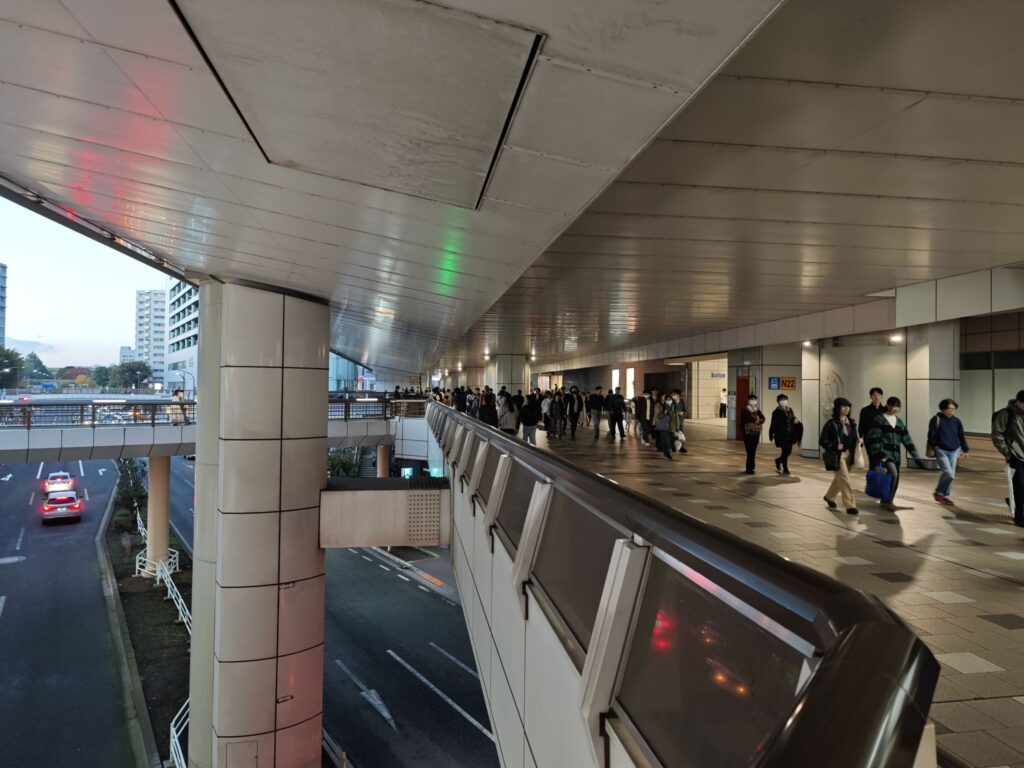 JR立川駅の北口より下車。二階の出口からペデストリアンデッキ(高架型歩道橋)を歩き、多摩モノレールの立川北駅高架下を通過して北に向かいます。