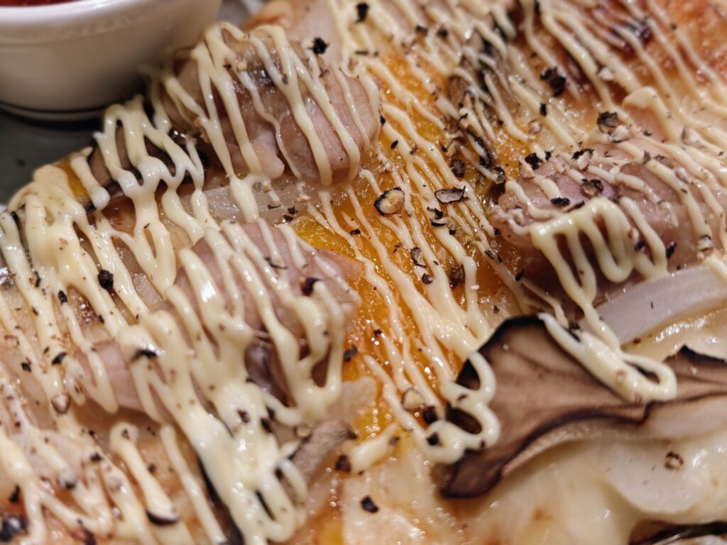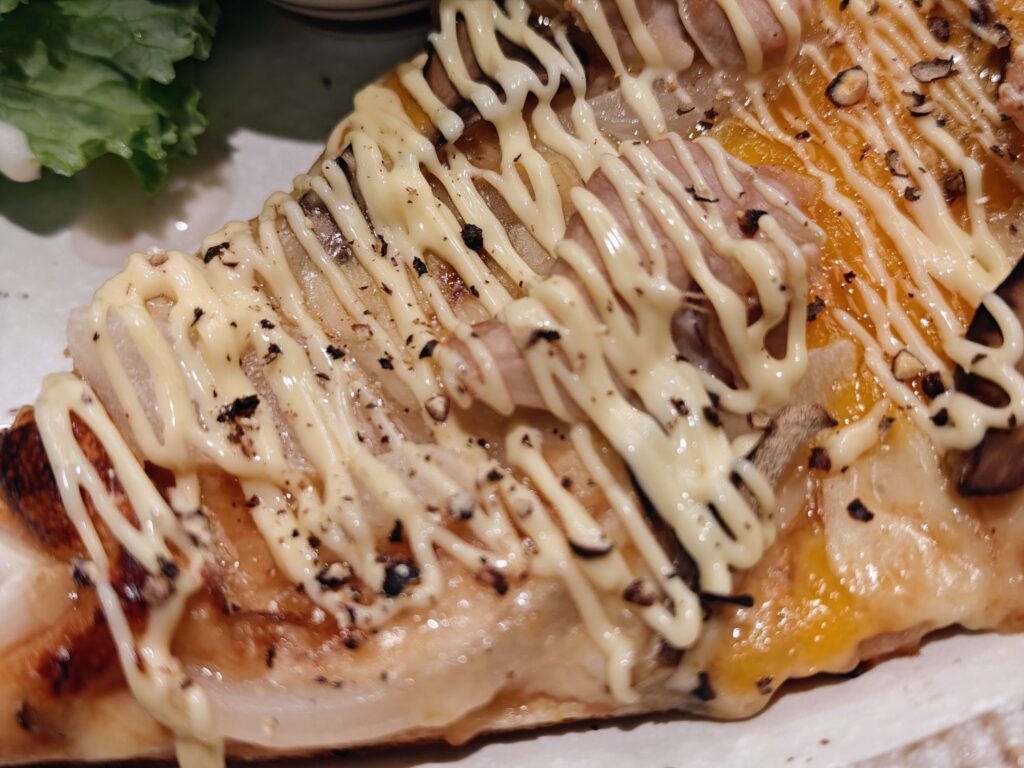 ではメインディッシュの「マイタケと照り焼きチキン」のピザを詳しく見ていきたい。