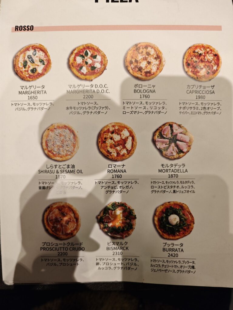 『ピッツェリアカリメロ』で注文したもの