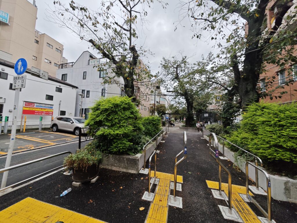 高架下沿い西(自由が丘方面)に向かって歩き並木道が見えたら右折します。