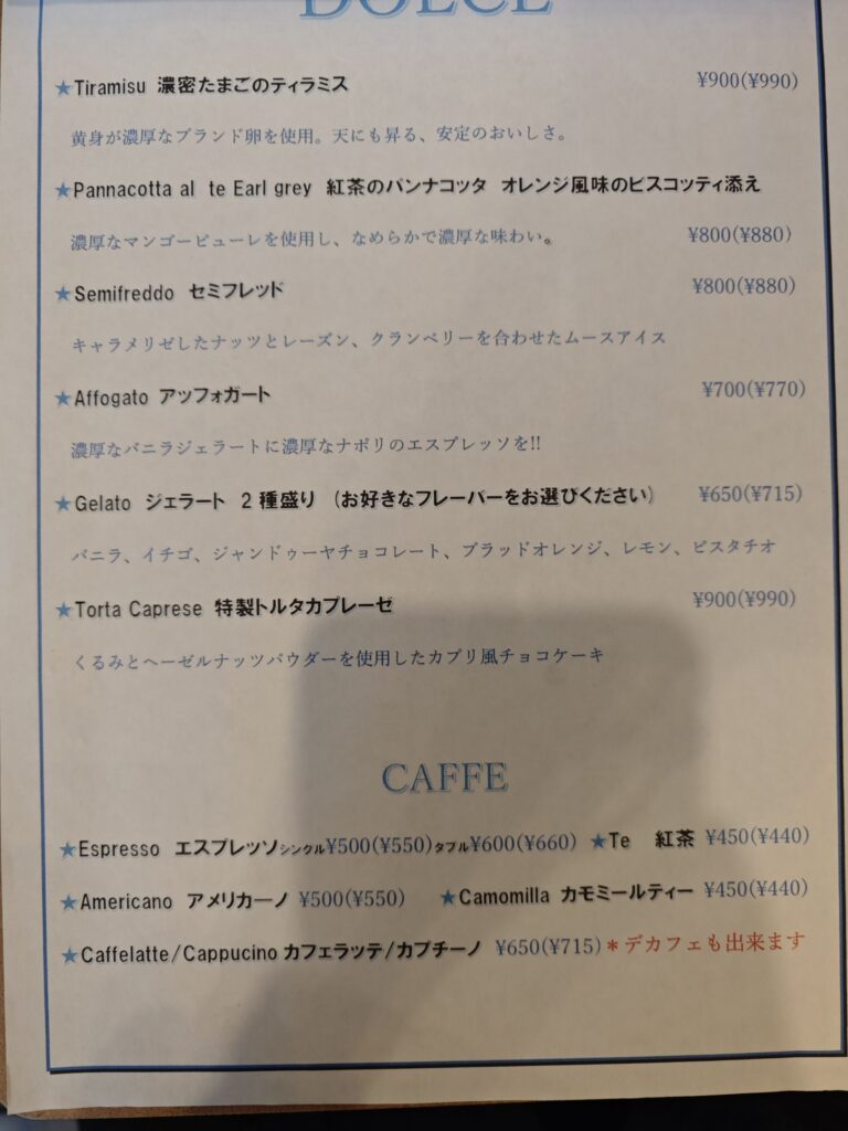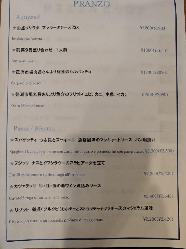 前菜やドルチェも充実しており楽しいひと時が過ごせそうだ。
