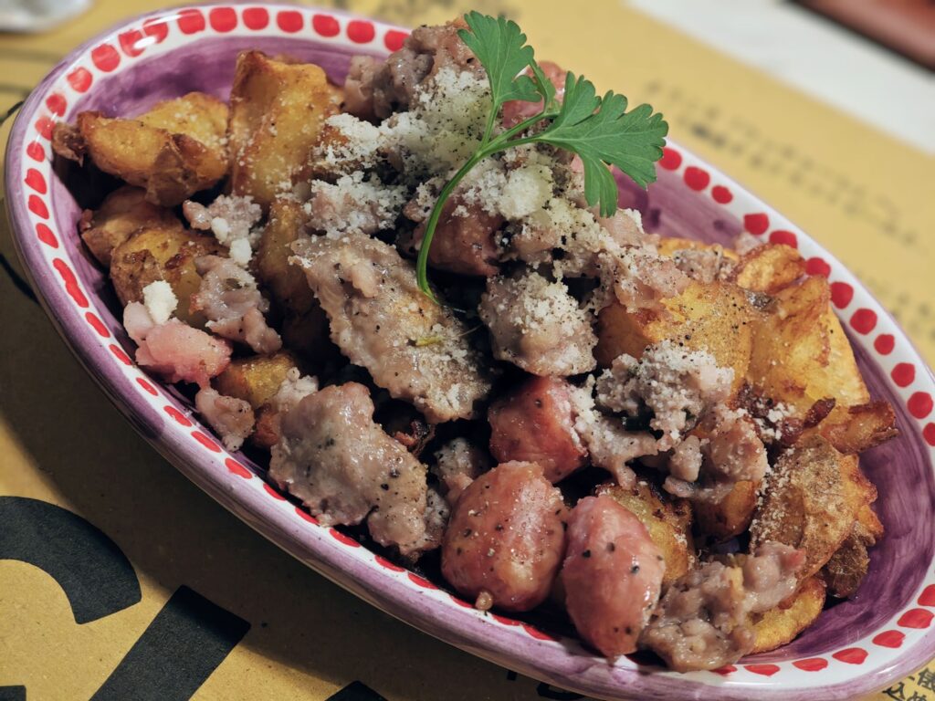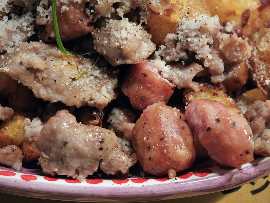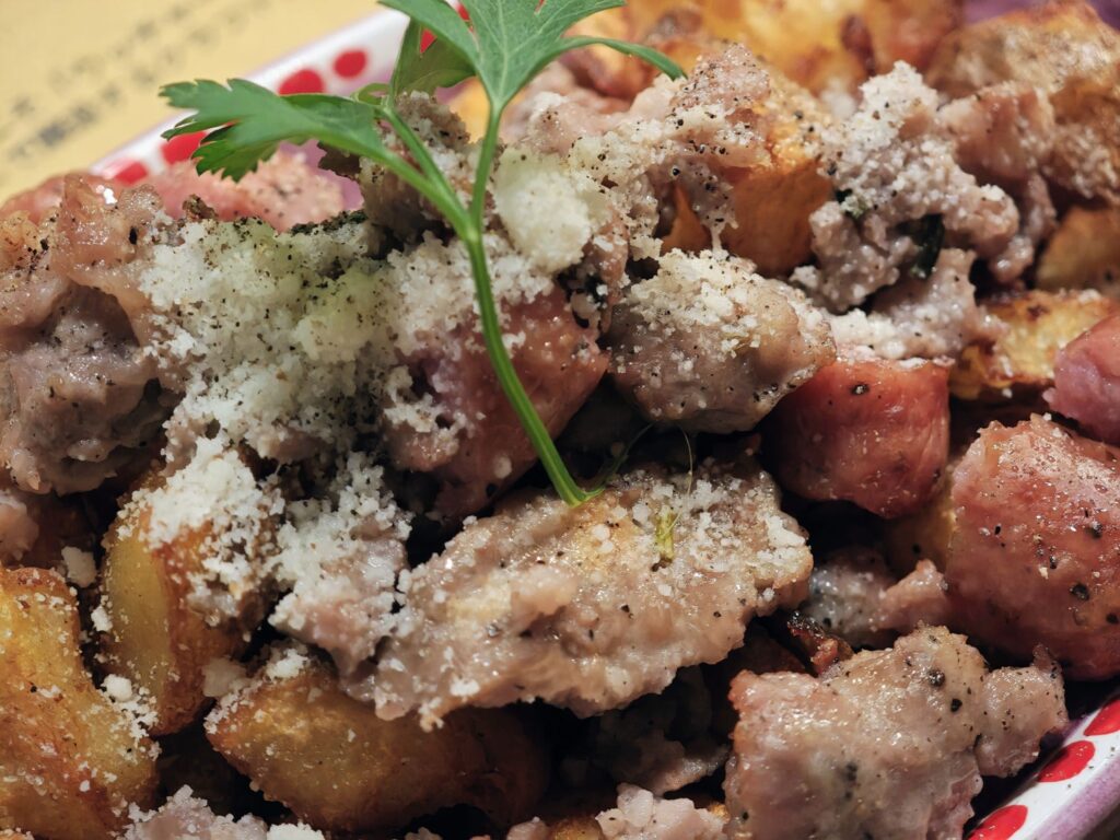 塊のような大きさのサルシッチャ。辛味はなくシンプルに胡椒で味付けされており肉自体の風味がストレートに舌先に伝わってきます。ほどよい固さがありゴロゴロとした食感が秀逸だ。