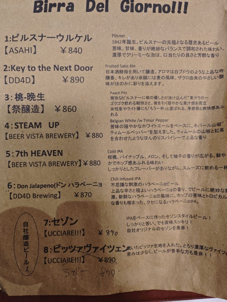 以上、『UCCIARE !!!』でした!自家醸造のクラフトビールが飲めて薪窯で焼いたナポリピッツァが楽しめる面白いピッツェリア。