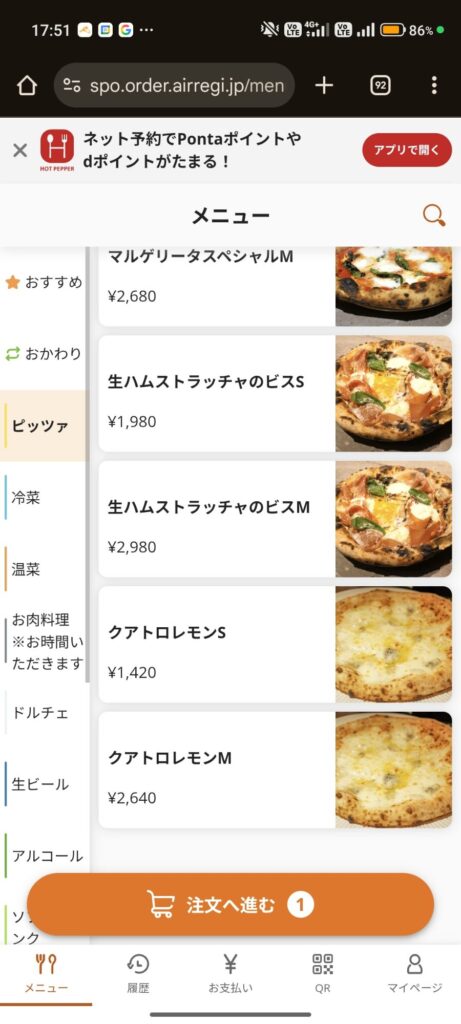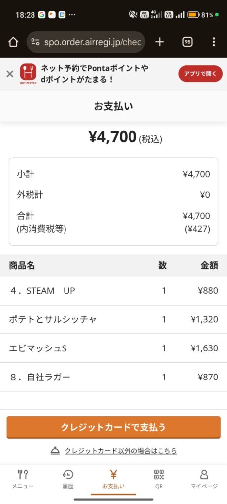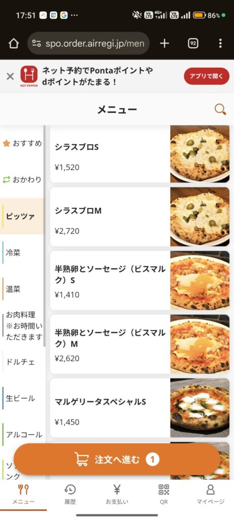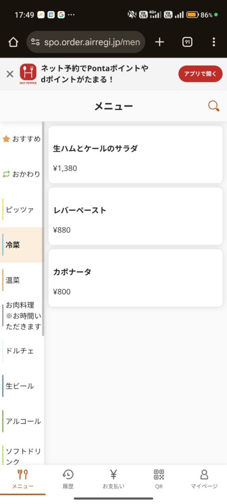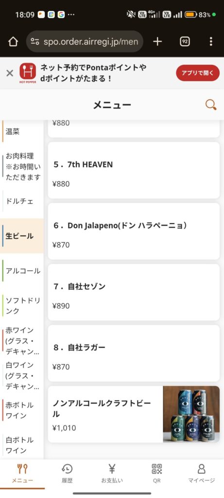 注文方式は卓上のQRコードからモバイルオーダーで。