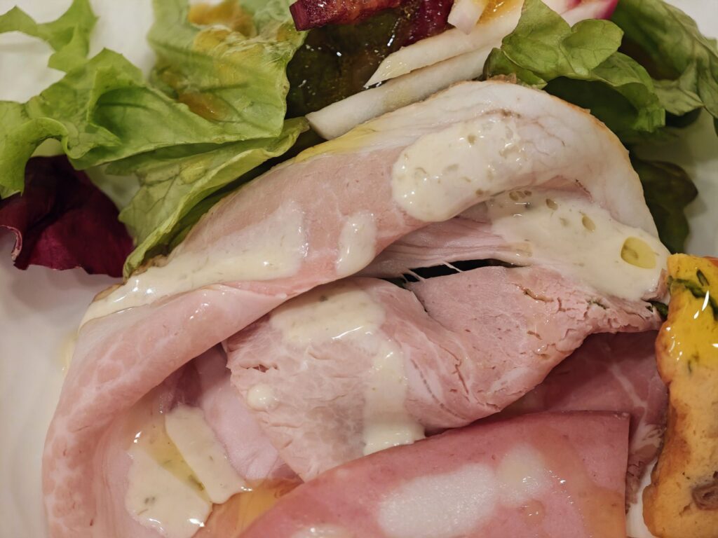 こちらは「プロシュート・コット」。しっとりとした舌ざわりとギュッと凝縮された濃厚な肉の風味。