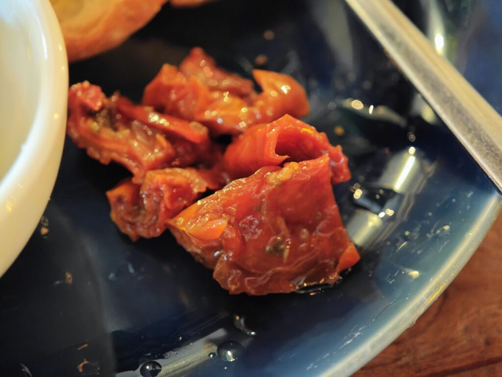 ドライトマトは香辛料に漬けこんであるのか、ドライフルーツに似た甘さの中に少しスパイシーさを感じます。